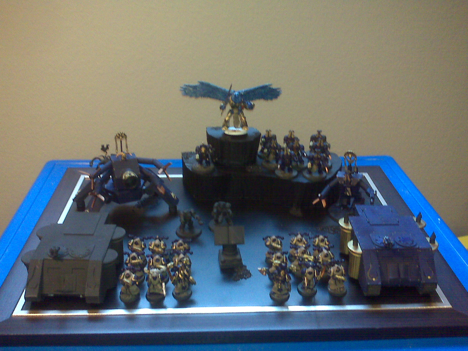 I finished painting the base coat of my Thousand Sons Acolytes, and started in on the terminators, getting most of the blue painted, but thats about it. Sounds kinda pitiful, and with the dark color of the blue and the black primer, it looks even more so. So, no picture for those, just have to take my word for it.